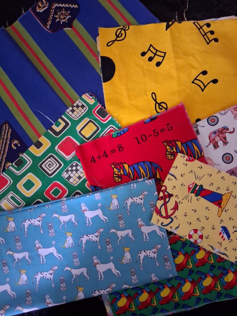 A colourful collection of larger and small cotton fabric ready for a stunning Children’s Quilt. All sizes and total bundle weight is listed in the eBay shop. Pop over and take a look.