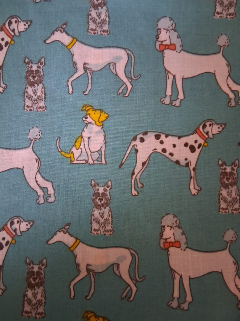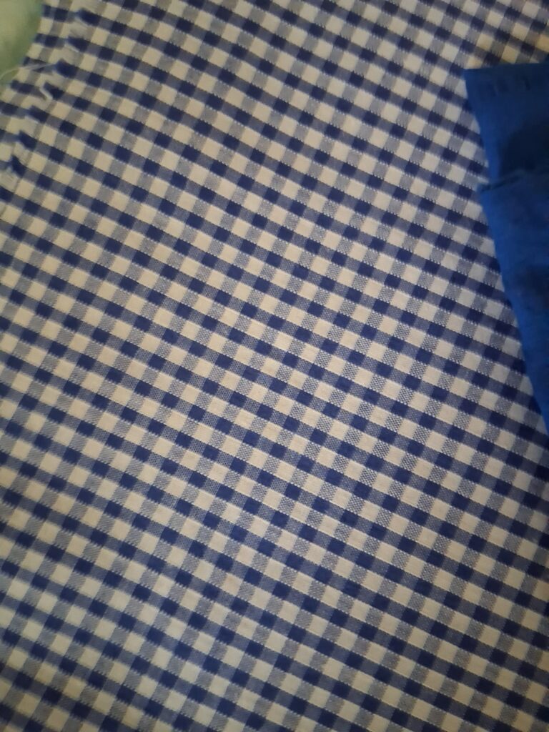 A seaside theme perhaps? Blue’s and greens including a couple of larger pieces, a blue check gingham and cotton jacquard non-stretch blue piece. Also some lovely scraps of tie-dyed cotton. A large bundle nearly 400g in fabric weight. All sizes are listed on eBay.