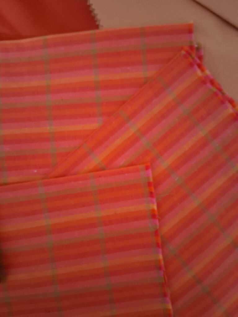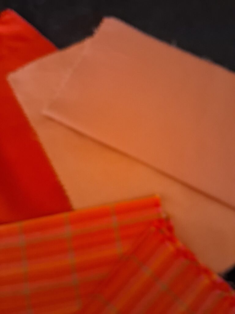 A lovely mix of red’s and orange’s to add to a stunning bright quilt. Vintage heavier cotton fabric on the check and the flowered piece. Nearly 300g weight of fabric.
