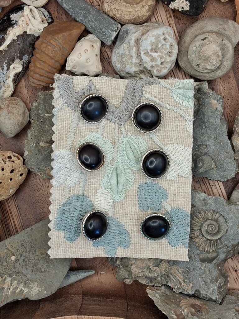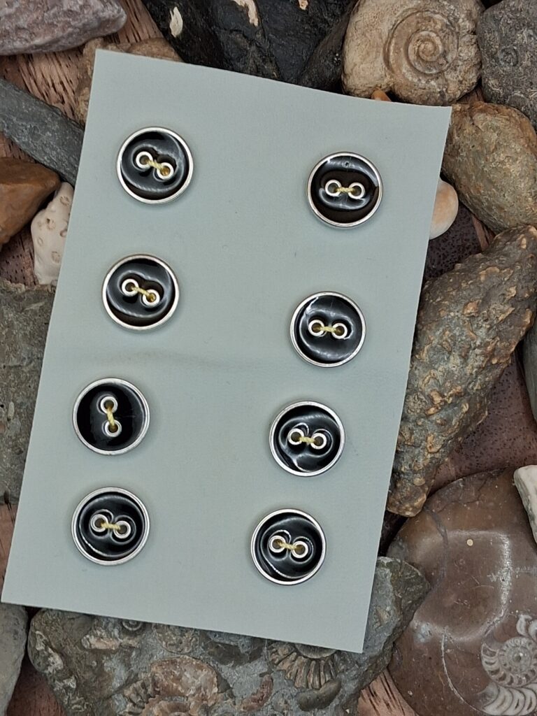 6 x silver edge black centre round shank M56