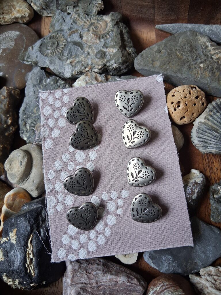 8 x heart flower stamp shank silver M55