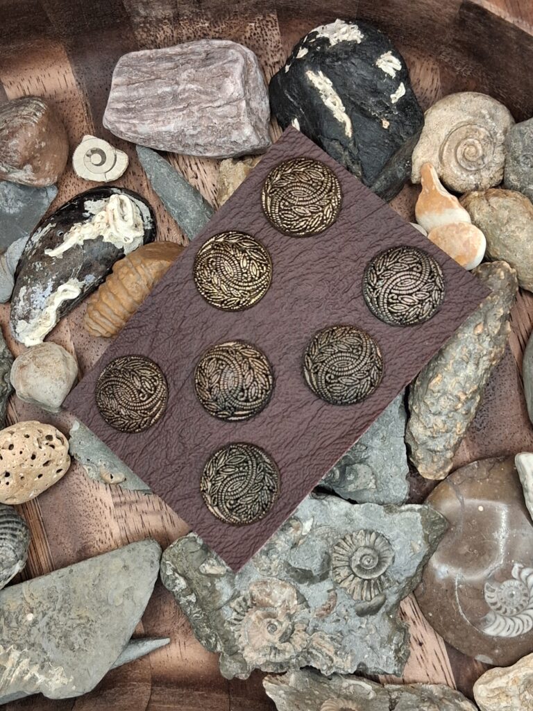 Reclaimed, recycled vintage buttons 7 x gold round shank etched stripe (M22)