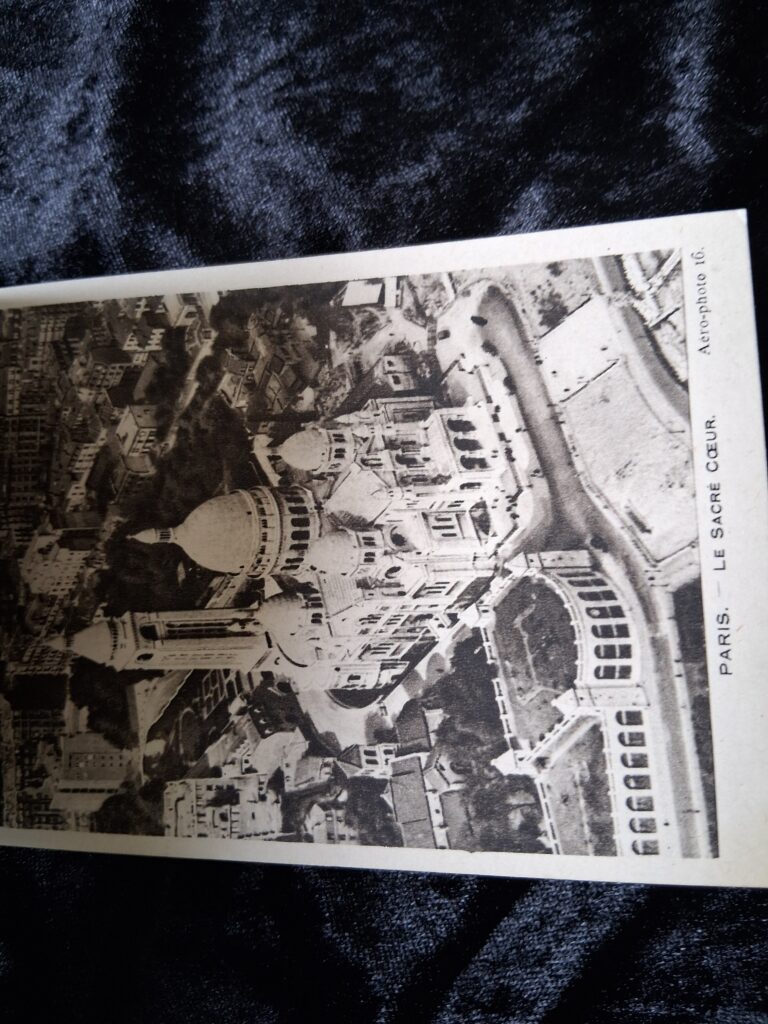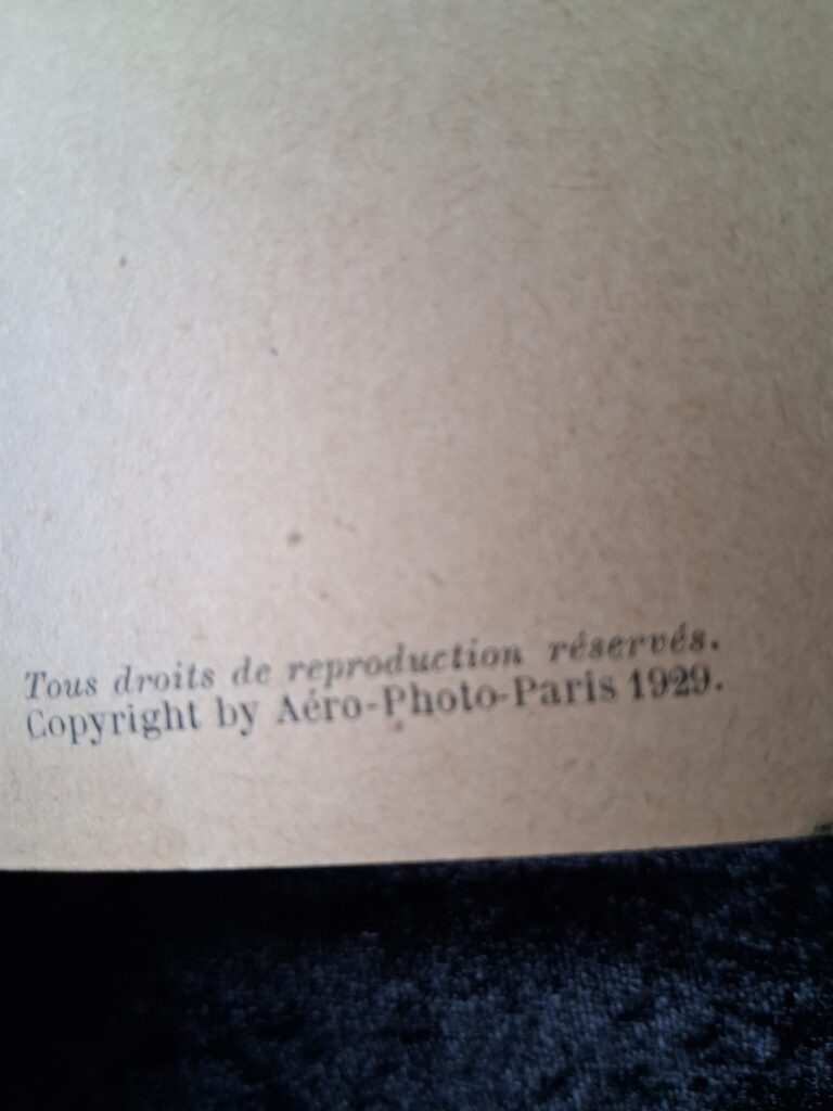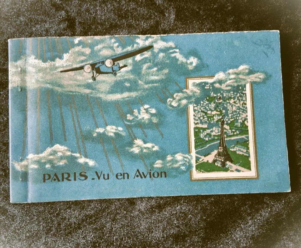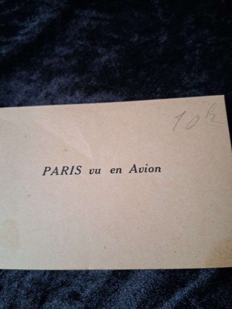 A lovely old booklet containing 21 postcards with Aerial Views of PARIS, made in 1929. It is in good condition. I don’t know whether this was the original amount of postcards. Online searches suggest there may have been 23 postcards in the original? But I can’t tell from the booklet where any may have been taken out. There is some writing in pencil on the back.