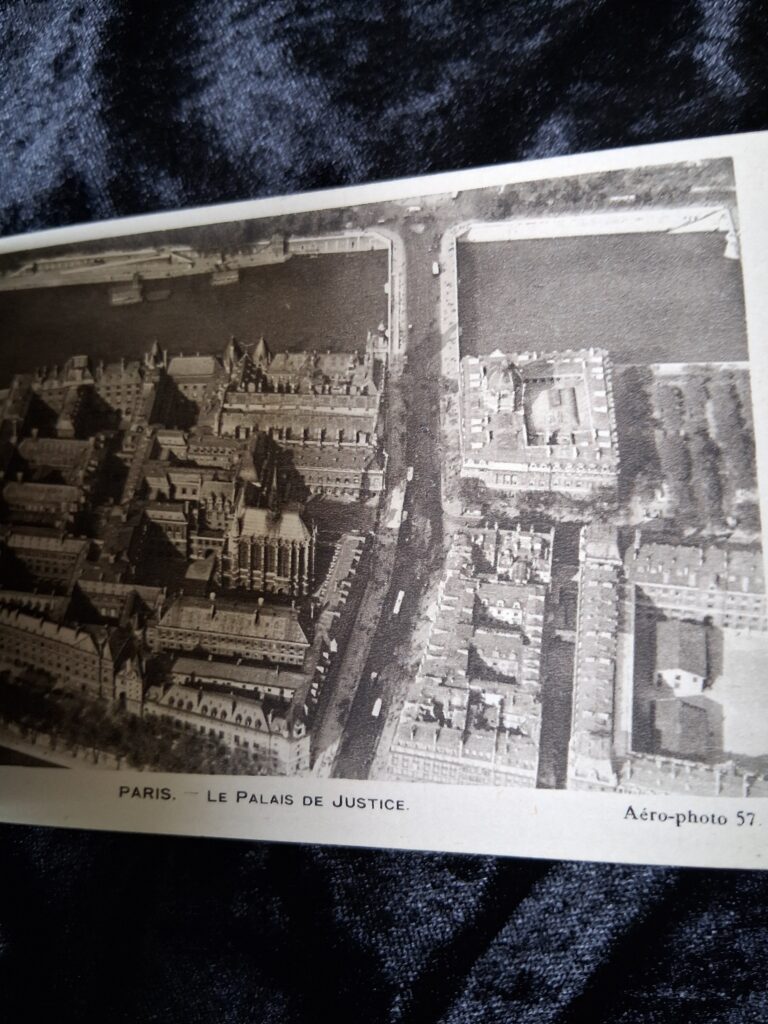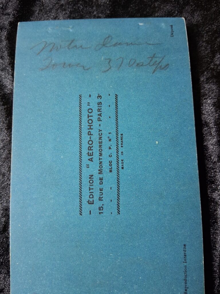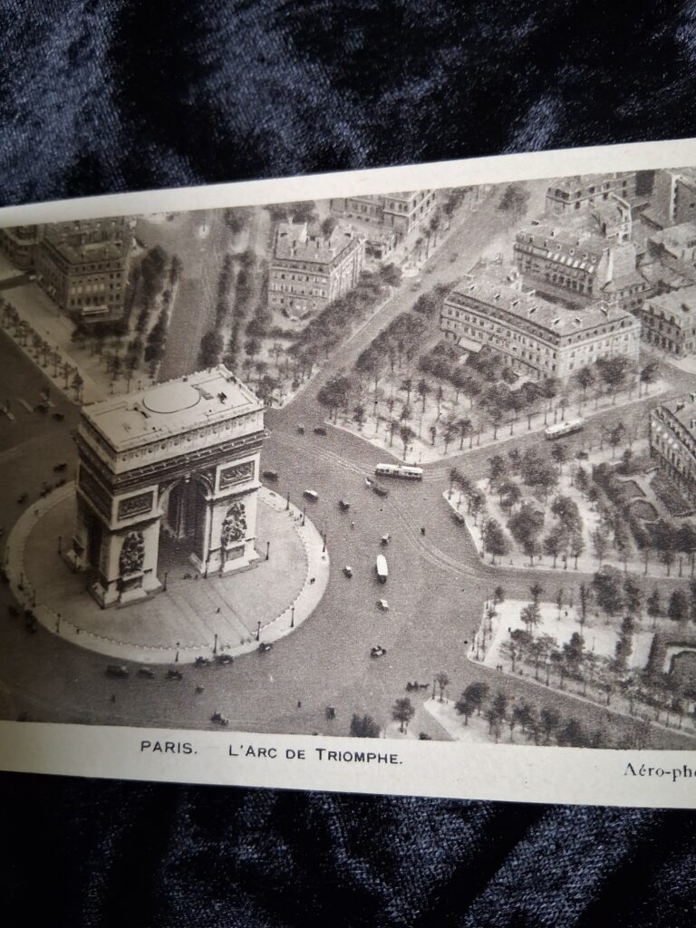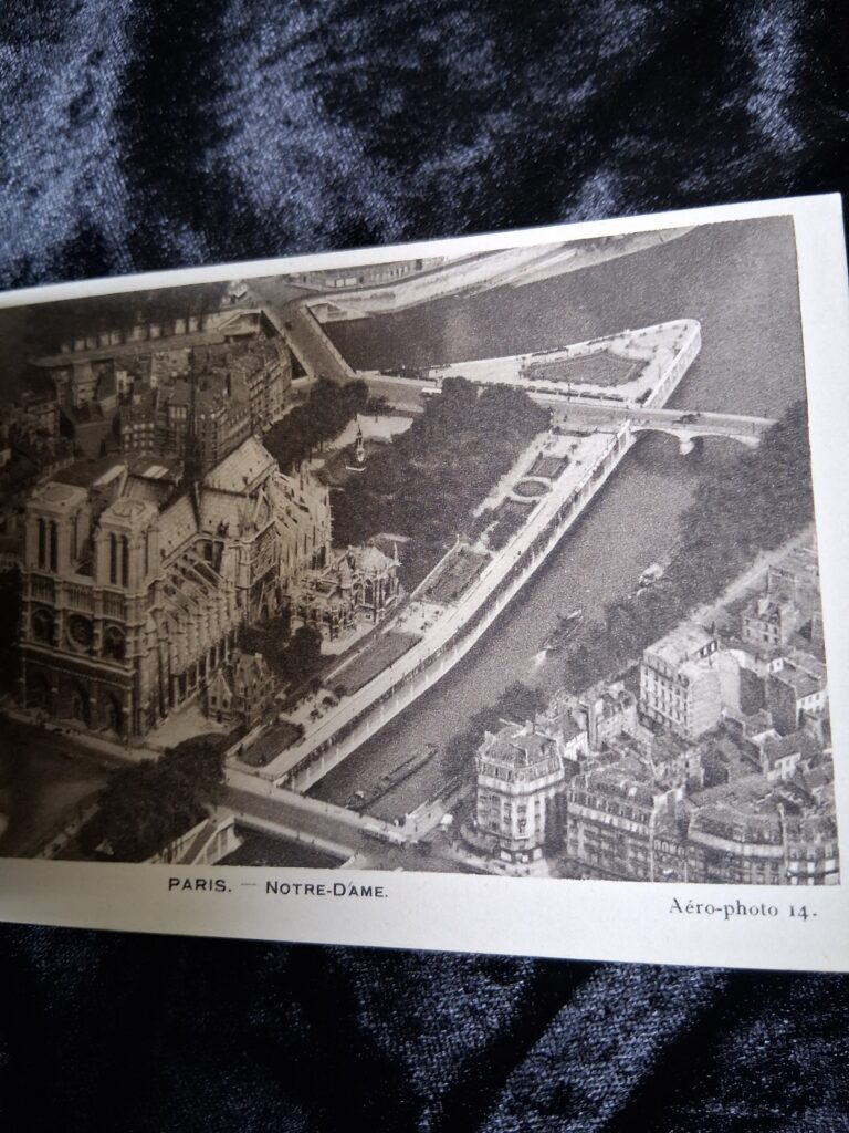 A lovely old booklet containing 21 postcards with Aerial Views of PARIS, made in 1929. It is in good condition. I don’t know whether this was the original amount of postcards. Online searches suggest there may have been 23 postcards in the original? But I can’t tell from the booklet where any may have been taken out. There is some writing in pencil on the back.
