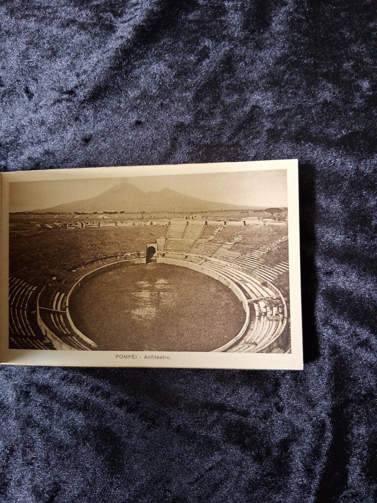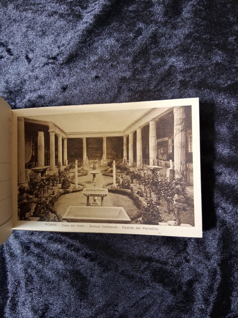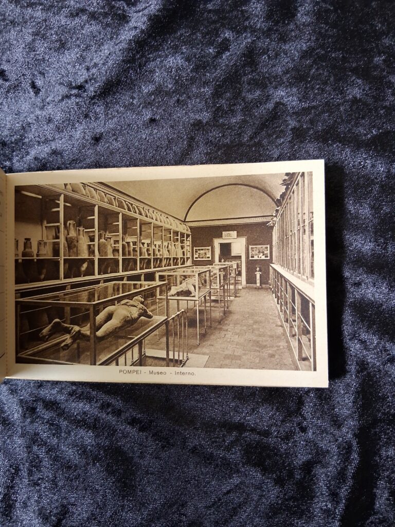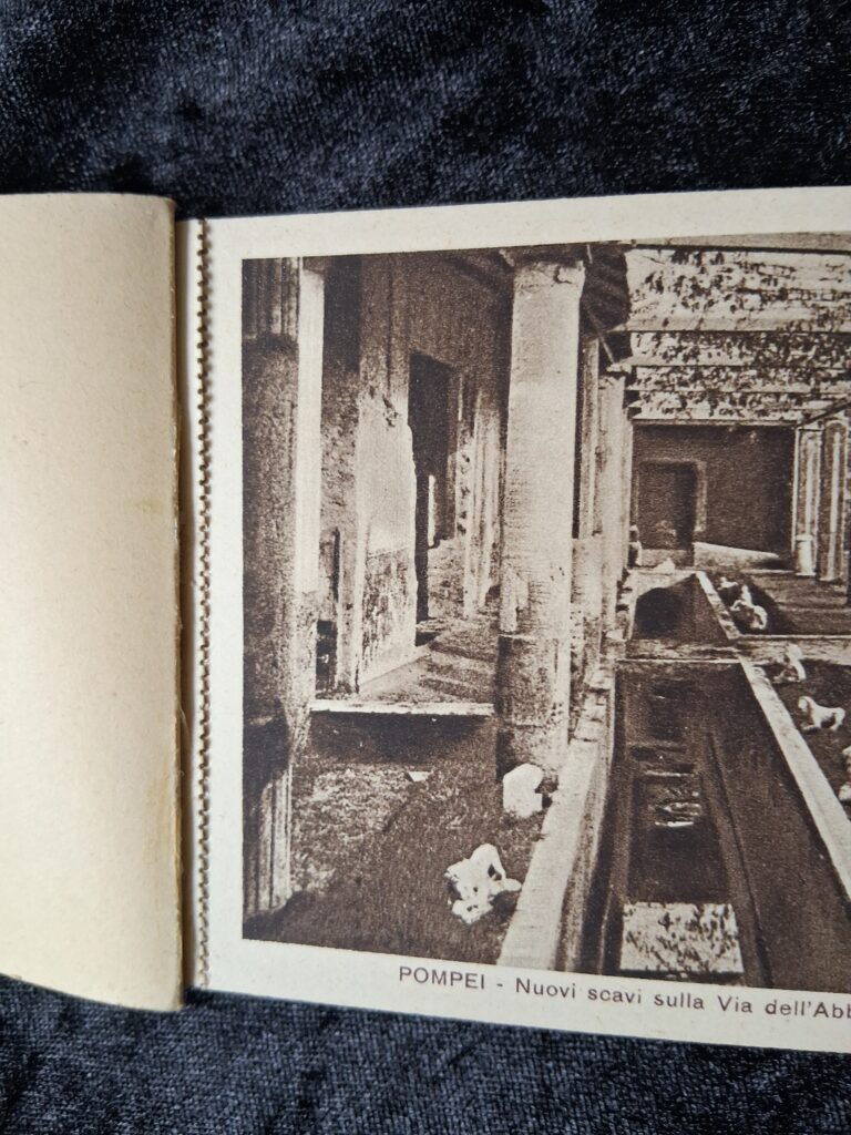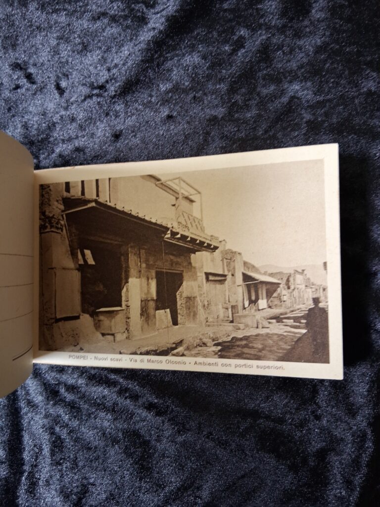 The first signs of Pompeii were discovered in the late 16th Century. Excavations continue to the present day. The photographs in this little postcard booklet are fascinating!