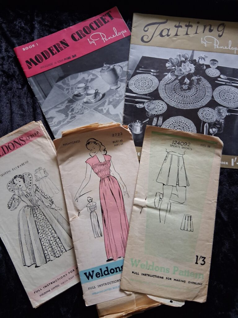 A few patterns from the 1930’s and 40’s together with an old book on Tatting and another on Crochet – available as a job lot.