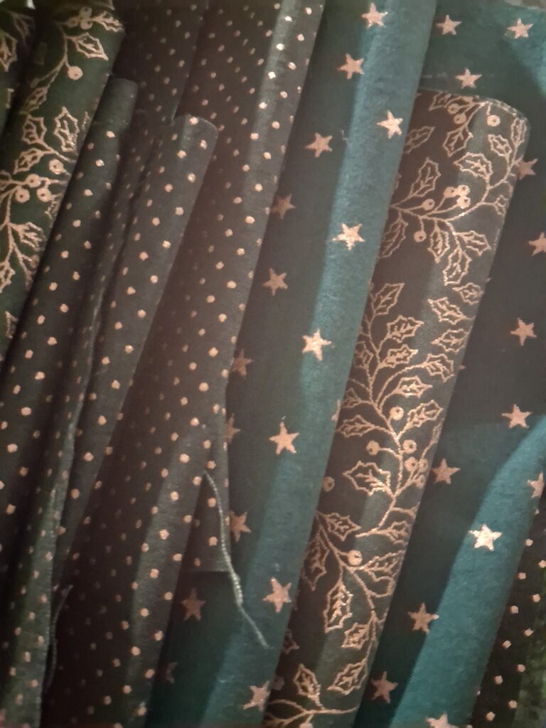 Some fabulous fabric finds its way into the shop today! Christmas comes early to The Old Button Shop. If you want to make a table runner or some Christmas cushions then this is the bundle for you. There is also a fabulous job lot of very Christmassy ribbon and some polystyrene balls for making into tree ornaments. Crafters have fun!