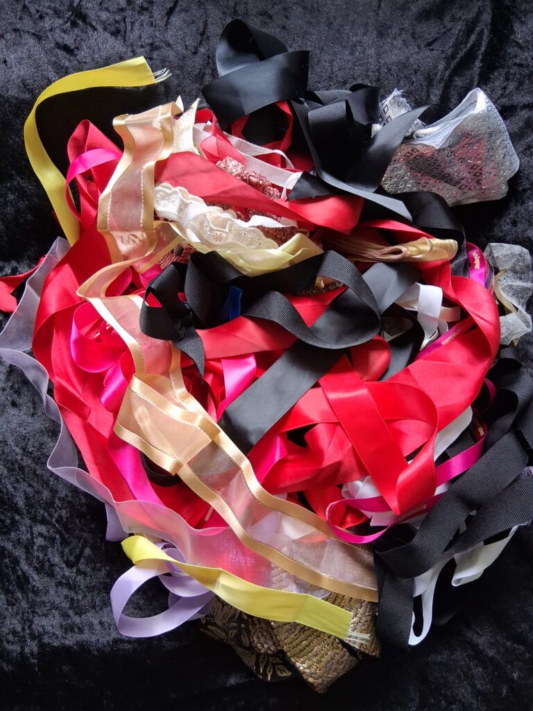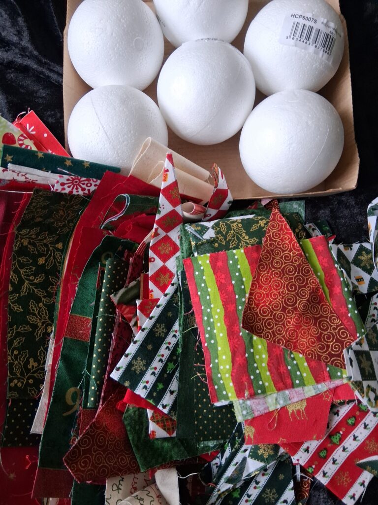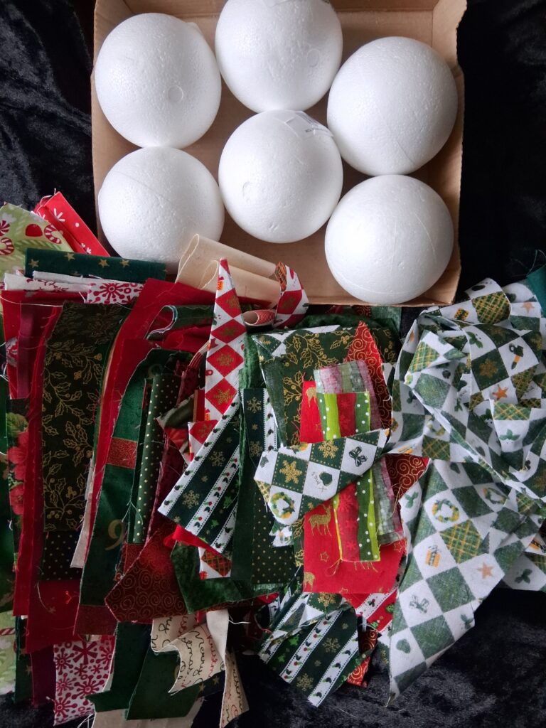 A large bag of Christmas ribbon for craft and scrapbooking projects as well as a listing with 7cm polystyrene balls to decorate for your Christmas tree.